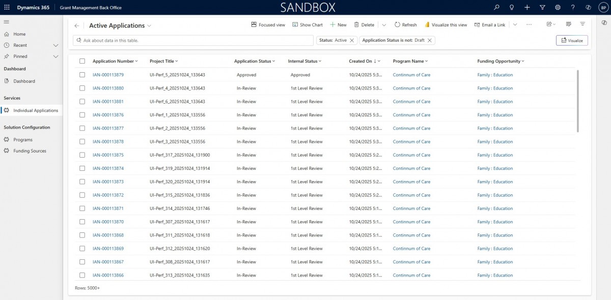 The solution consists of three integrated modules a client-facing Power Pages portal for applicants, a back-office Model-Driven App for reviewers and program officers, and an admin center to launch and manage programs and funding opportunities. Each component works seamlessly through Power Automate workflows and centralized Dataverse data management.